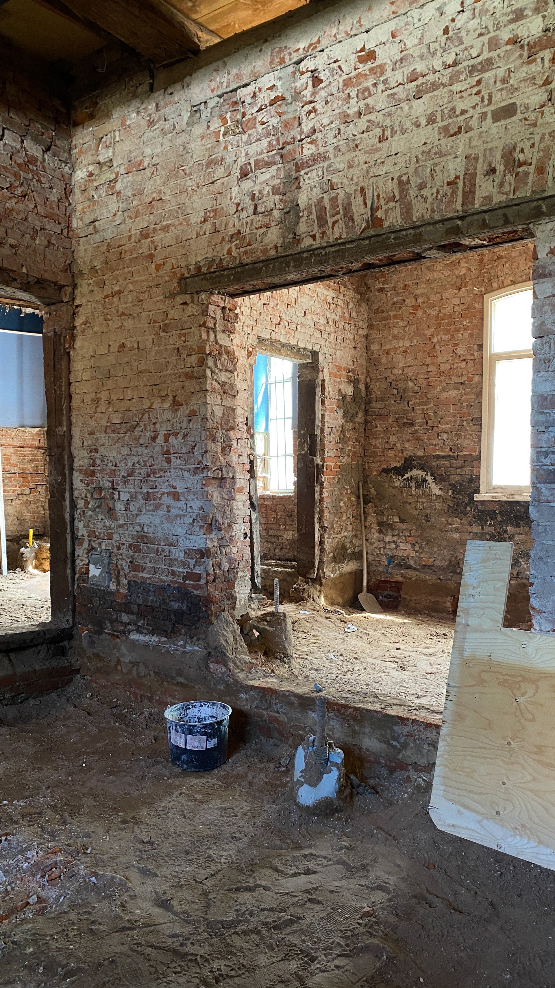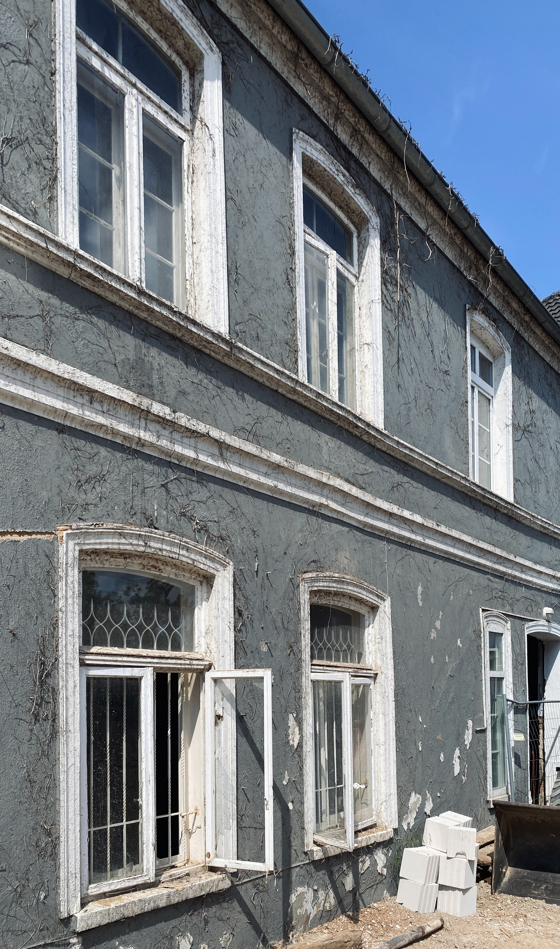 Seit der letzten Besichtigung ist einiges passiert... Fundament und Wände wurden ertüchtigt, das Dachgeschoss ausgebaut, Fenster ausgetauscht und Balkone angelegt. Schon jetzt strahlen die Räume, bald geht es mit dem Innenausbau und den Fassadenarbeiten weiter
